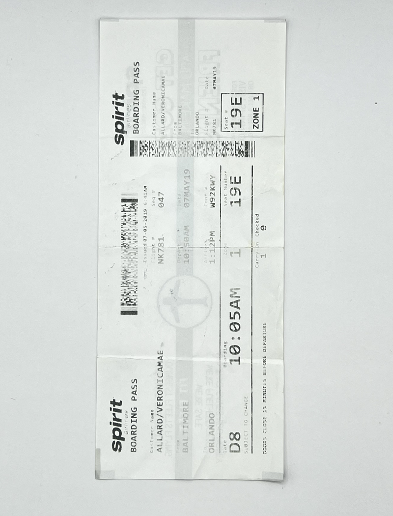 This plane ticket holds the very first journey that made me fall in love with travel. In 8th grade, my dad and I flew to Florida for a week of adventure—from learning to surf on Daytona Beach to discovering that fresh mahi is one of my favorite foods. Every detail of that trip is tied to this ticket: wandering shops with sunburned shoulders, standing in awe beneath the Atlantis shuttle at Kennedy Space Center, and exploring the old stone walls of the St. Augustine fort while hearing stories of the past.